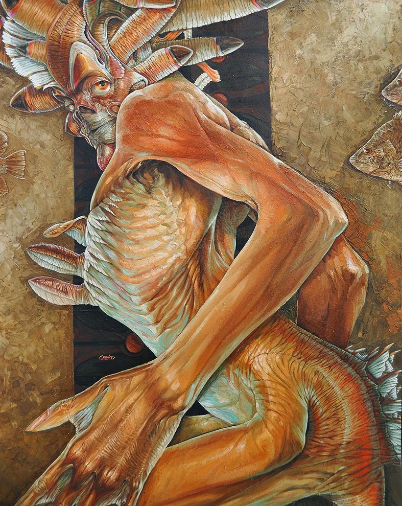 Rather than depicting transformation, Aquatic Spawn emphasizes origin, birth, and the fragile threshold between potential and survival. Every detail—ribbed textures, embryonic folds, luminous eyes—evokes a biology engineered to endure but not yet fully awakened. It is the genesis of a lineage, the spark from which future adaptations will arise.